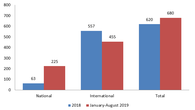 In addition to the warnings about national unauthorised entities that have been issued so far this year, the CNMV has issued 455 warnings on financial boiler rooms that operate from other European countries. In this area, there has also been an increase of 24% compared to the previous year.
