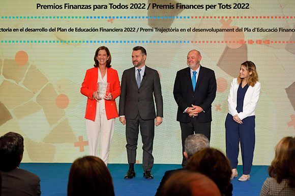 The final of the Financial Literacy Contest took place at main event in Barcelona, presented by journalist Anna Boadas, with the ceremony conferring the 2022 Finances for All awards for Financial Education, together with the 2020 awards since these could not be handed over in person that year due to the COVID-19 pandemic.