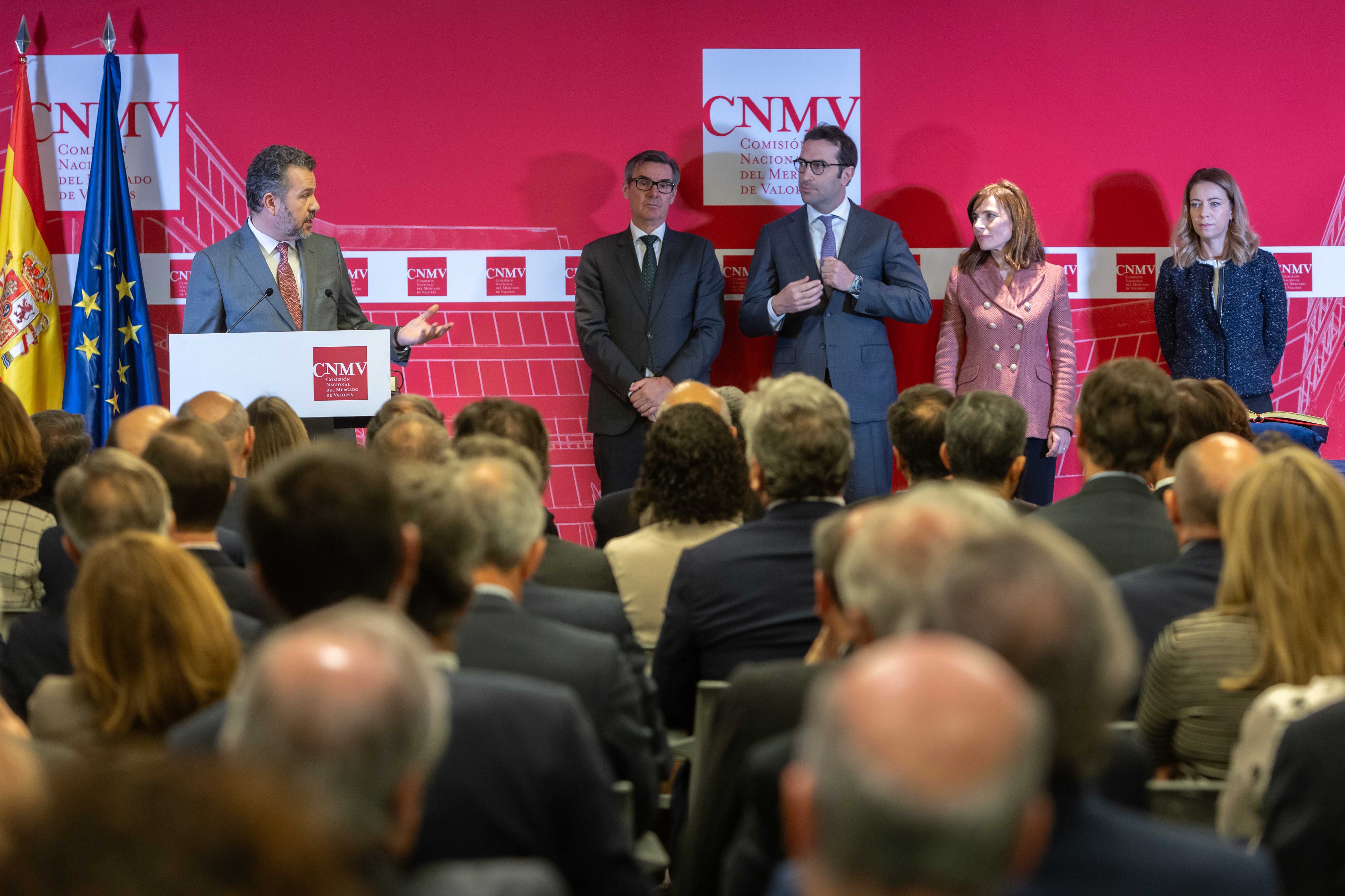 El Ministro definió a la CNMV como una institución de referencia y elogió la calidad institucional como gran activo para el país y para el crecimiento. Mencionó la revolución tecnológica y la descarbonización de la economía, entre los grandes retos y revoluciones que nos obligan a poner el foco en los mercados de capitales para financiar las necesidades de inversión. También explicó los avances hacia la Unión del Mercado de Capitales impulsados desde España que buscan la canalización del ahorro hacia los mercados de capitales y la movilización de recursos, con especial atención a empresas jóvenes o innovadores. “La función de la CNMV es clave en la mayor transparencia que genera confianza, así como en la protección al inversor”, afirmó.