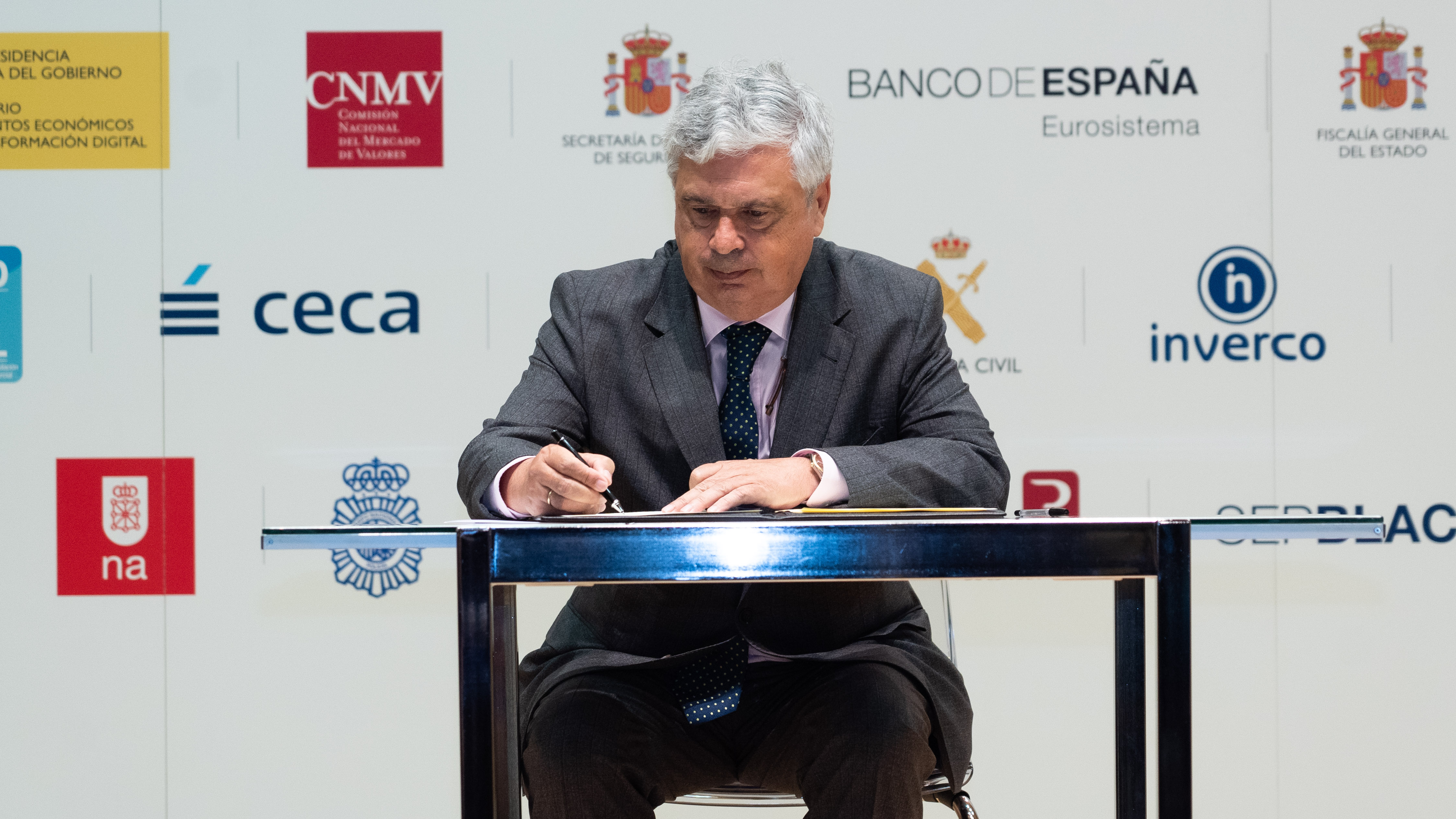 En la firma del acuerdo tomaron la palabra el presidente de la CNMV Rodrigo Buenaventura, el gobernador del Banco de España Pablo Hernandez de Cos y el secretario de Estado de Seguridad, Rafael Pérez Ruiz. Todos los participantes intervinieron también a través de un vídeo general. La clausura correspondió a la vicepresidenta primera del Gobierno y ministra de Asuntos Económicos y Transformación Digital, Nadia Calviño.